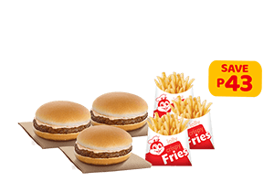 Three Yumburgers with 3 Regular Fries 294_ffcf6b-2a> |